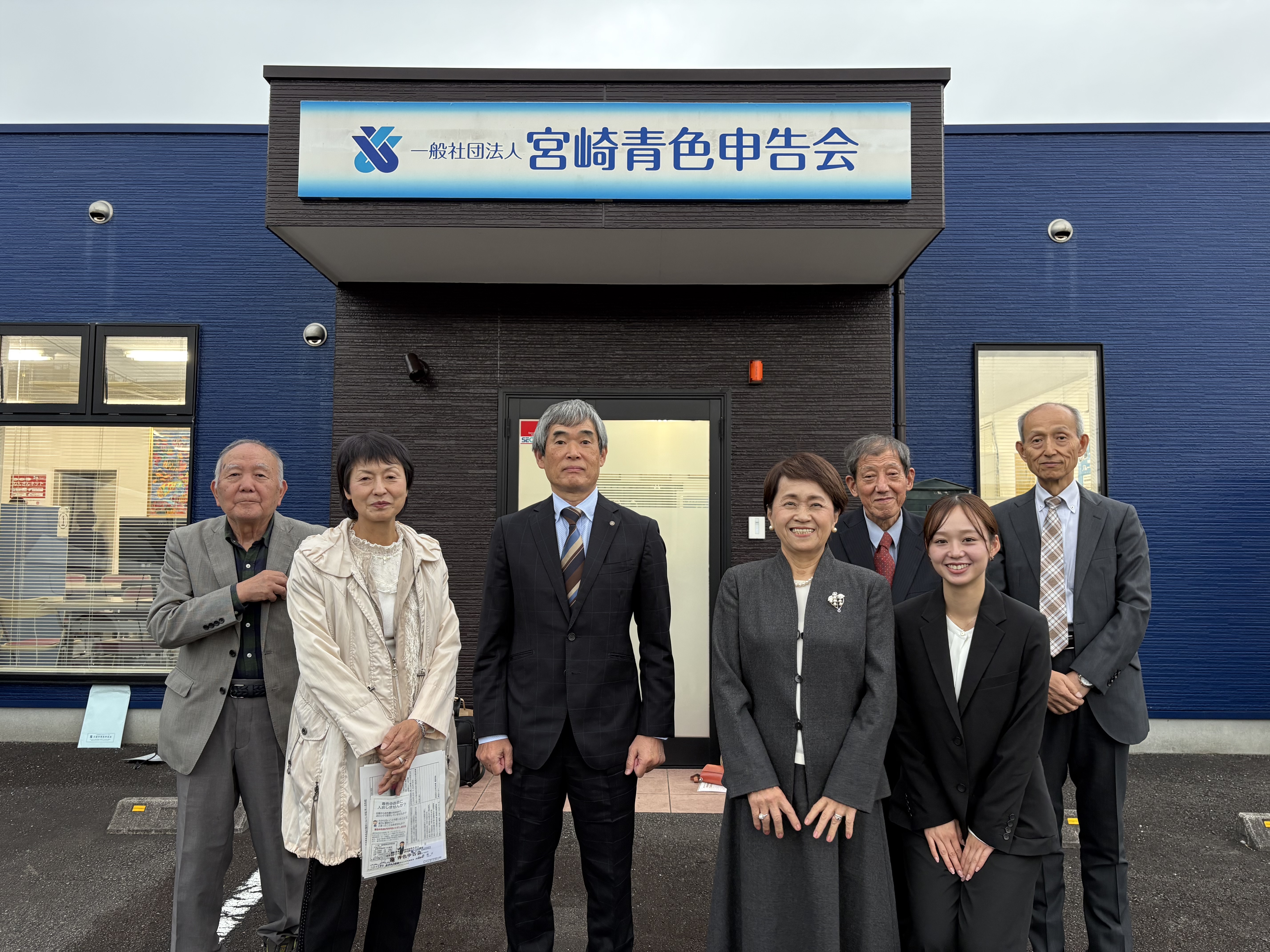 11月12日~13日に宮崎青色申告会への先進地視察研修会を実施しました。(参加者7名)意見交換会では、宮崎会の歴史や運営方法、会員増強運動など、大変有意義なお話しを伺うことができました。宮崎会は会員増強運動に力を入れてあり、毎年会員が増加しています。そんな宮崎会と久留米会との大きな相違点として、毎年の確定申告期間中、税務署内確定申告会場にて税務署の協力のもと、青色申告制度の普及促進のため設置する青色コーナーの実施期間が挙げれらます。久留米会では、5日間開催であるのに対し、宮崎会では1カ月にわたり実施されており、会員増加に繋げてあります。また、相談予約では独自の予約システムを導入し、電子管理を行い、業務の効率化を図っていました。久留米会では電話予約のみであるため、今回伺った取り組みを参考にして、今後の当会運営の改善に繋げていきたいと思います。懇親会では、食事を交えながらゆっくりと意見交換を行うことができ、参加者同士の理解がより深まりました。