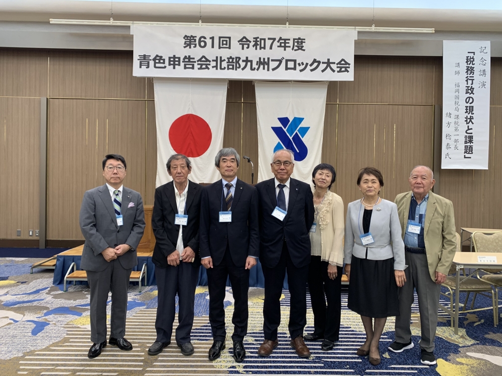 10月16日に佐賀県佐賀市にあるHOTELグランデはがくれにて、第29回(令和7年度)北部九州青色申告会連合会定時総会及び第61回(令和7年度)青色申告会北部九州ブロック大会が開催され、当会より9名で参加いたしました。
