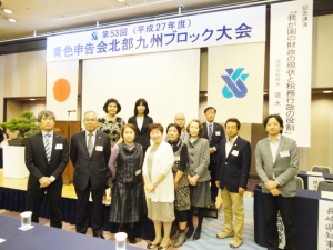 大会第1部では、全青色の山本特別顧問から「青色申告制度・青色申告会65年のあゆみ」と題してこれまでの青色申告会が行ってきた税制政策活動やその活動目的などを説明頂きました。第2部の記念講演では垣水福岡国税局長から「我が国の財務状況と税務行政の役割」というテーマで講演を頂きました。会勢拡大への取組みと税に関する仕組みを学んだ有意義な大会となりました。