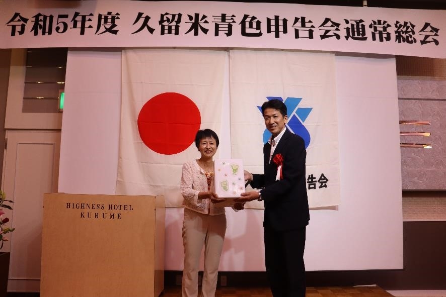 久留米税務署様より久留米青色申告会女性部へ使用済み切手の贈呈が行われました。